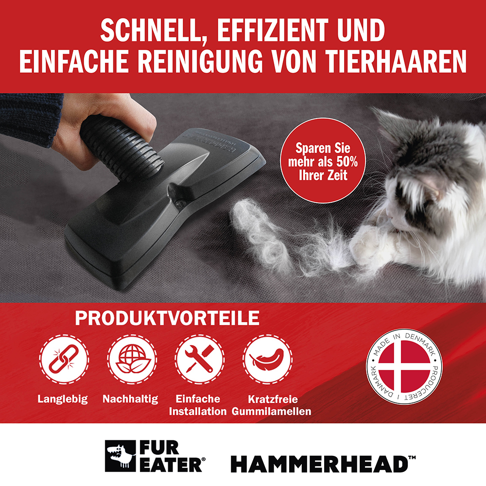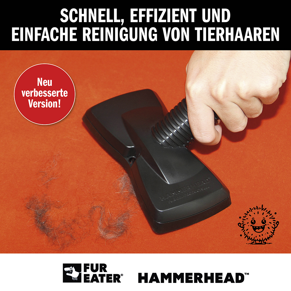✅ Einfach zu Hause und im Auto zu verwenden ✅ Weniger Stromverbrauch, geringerer CO2-Fußabdruck ✅ Sparen Sie mehr als 50 % Ihrer Zeit ✅ Befestigen Sie den FurEater direkt am Staubsauger. FUREATER HAMMERHEAD – Hartnäckige Tierhaare mühelos entfernen Verabschieden Sie sich von lästigen Tierhaaren! Der FUREATER HAMMERHEAD ist die perfekte Lösung, um Ihr Zuhause und Ihr Auto sauber und frei von Tierhaaren zu halten. Egal, ob auf Autositzen, Kleidung, Teppichen, Polstermöbeln oder anderen Textilien – dieses innovative Werkzeug bietet eine schnelle und effektive Reinigung.