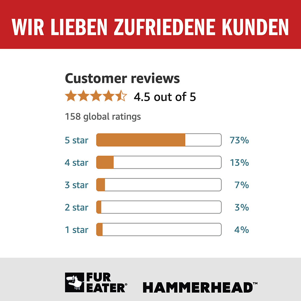 Ausgestattet mit einem ergonomischen Griff und austauschbaren Zähnen wurde der FUREATER HAMMERHEAD für maximalen Komfort und Langlebigkeit entwickelt.